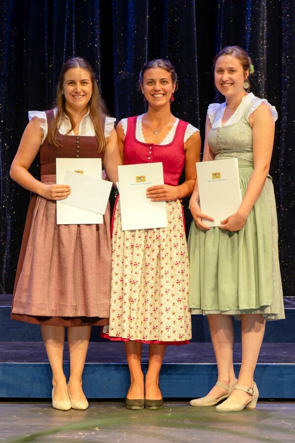Angelika Spitzer und Dr. Peter Nawroth von der Regierung von Oberbayern eröffneten die Feier. Es folgten Grußworte von Olaf von Löwis, Landrat des Landkreises Miesbach, Peter Fichtner, Kreisobmann des BBV Bad Tölz-Wolfratshausen, Margarete Engl, Vorstandsmitglied des Landesverbands hauswirtschaftlicher Berufe Bayern, Alois Schuller, Vorsitzender des Vlf Holzkirchen sowie Margarete Kohnert, Bereichsleitung Landwirtschaft AELF Holzkirchen. Musikalisch umrahmt wurde die Feier von „Trio Sinhart“.